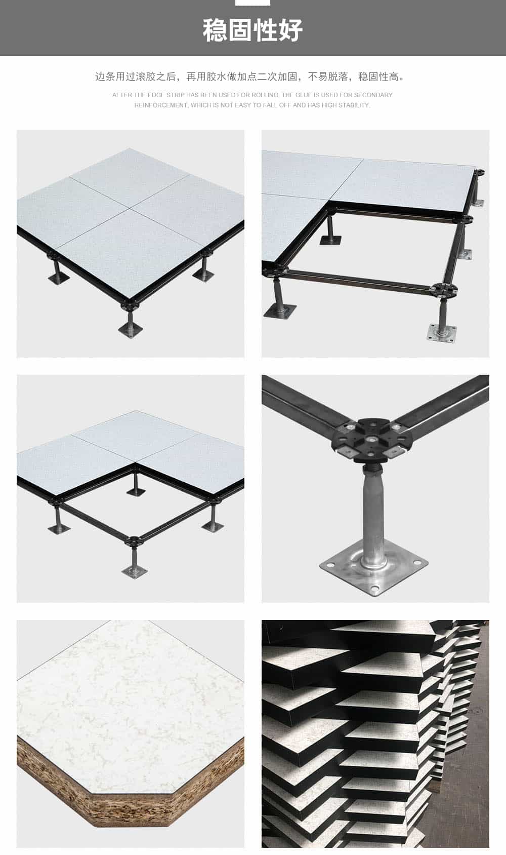 歐式復(fù)合地板,板芯采用、未經(jīng)加工的中高密度刨花板基,上面粘貼HPL(防火板)、PVC、陶瓷、等不同裝飾面層,下面粘貼鍍鋅鋼板/鋁板/鋁箔,四周導(dǎo)靜電黑膠條封邊,阻止機(jī)械損壞及潮濕變形。通過阻燃劑的添加,使其達(dá)到B1級(jí)防火,且具有較輕的自重,達(dá)到更高的承載能力和環(huán)保水平,標(biāo)配出口型加重配件。